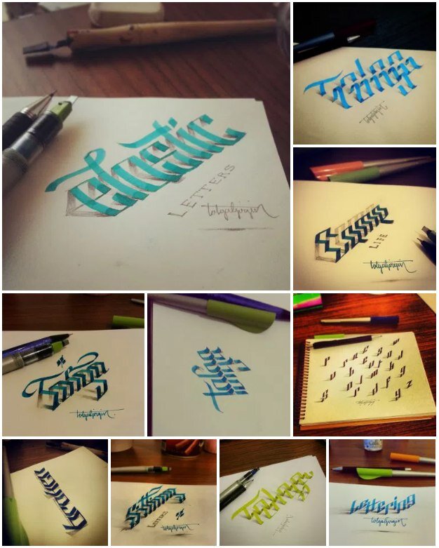 Толга Гиргин из Турции публикует в своем бихэнсе эксперименты с псевдо-объемными буквами. По-моему, свежо.