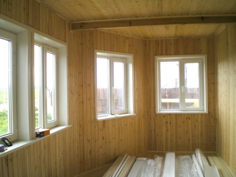Что может быть приятней, чем уютные летний вечера, проведенные на веранде своего загородного дома? Чаепития с друзьями или чтение книги становится еще приятнее, когда вы можете уединиться в тишине и смотреть на свой участок через большие окна. Самым оптимальным вариантом отделки веранды становится использование вагонки — она создает в помещении нужное настроение, долго служит и удобна в монтаже. Мы расскажем вам как правильно своими руками обшить вагонкой веранду. Вагонка— это популярный обшивочный материал, который производится из сосны или ели. Она делает интерьер, привлекательным и уютным, маскирует дефекты стен, а также обеспечивает хорошую теплоизоляцию. Кроме того, вагонка — это натуральный и экологически чистый, а значит безопасный для здоровья человека материал. Определяемся с рисунком и приступаем к монтажу Перед монтажом, нужно определиться как именно вагонка будет располагаться на стенах: горизонтально, вертикально, диагонально или «елочкой». Но нужно иметь ввиду, последний