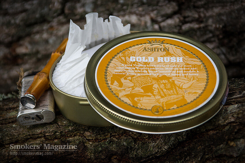 Трубочный табак Ashton Gold Rush – это смесь чистых Вирджиний, для производства которой используется только отборный табачный лист. Табак обладает мягким вкусом, горит прохладно, давая дым, наполненный приятными ароматами, в которых узнаются ноты лимона и меда. Состав: Вирджиния Табак в банке представляет собой смесь светлой и золотой Вирджинии. Нарезка разношерстная: есть и ленты, и хлопья разных размеров, и кусочки неразмятого флейка. Влажность оптимальная для того, чтобы сразу курить, но я перед набивкой разминал табак до однородного состояния. Что касается аромата, то сразу после открытия банки табак источал запах сухофруктов со сливовой доминантой – насыщенный и приятный. Через два-три дня, когда смесь подышала воздухом, чернослив заметно отступил и на поверхность вышел аромат соуса, напоминающий лимонные леденцы и фруктовую карамель. То есть, табак этот все же ароматизированный. Несильно, с претензией подчеркнуть этой ароматизацией натуральные ароматы табака, но тем не менее… Пр
