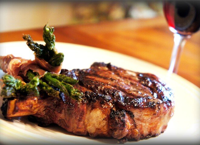 Для начала разберемся из какого мяса делают стейк. Классический стейк готовиться из говядины. Наиболее популярными видами стейков считаются: Рибай. Для приготовления этого вида стейка используется кусок мяса, который вырезается из подлопаточной части туши. Такой кусок мяса должен иметь большое количество тонких жировых прожилок. Чем больше таких прожилок, тем лучше стейк. Ти-боун. Такое название стейк получил из-за косточки, которая напоминает букву «Т». Стейк готовиться из мяса на косточке, которое вырезается на границе поясничной и спинной части туши. Стриплоин – один из самых популярных стейков. Обладает самым выраженным говяжьим вкусом. Стейк готовится из тонкого края поясничной части туши от ребер до костреца. Тендерлоин — куски мясной мякоти из говядины для стейка Тендерлоин, округло-овально-плоской формы, нарезанные поперёк мышечных волокон. Стейки также готовят из свинины, курицы и баранины. Баранину для стейка лучше выбирать с шеи, бедра или филейной части, свинину — с лопа