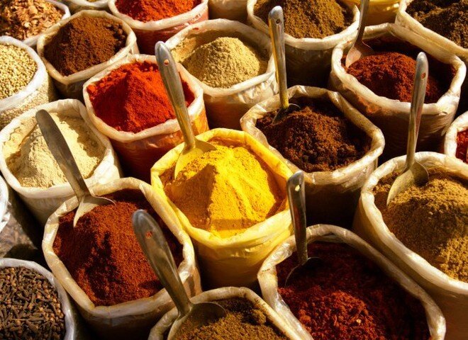 Перец Черный перец горошком занимает 80% всего мирового оборота торговли специями. Мало кто знает, что есть три вида перца: белый, зеленый и красный. Из них белый — самый щадящий. Есть еще душистый ямайский перец и английский перец, который на самом деле — гвоздика. Индонезийский перец — родственное растение, совсем не похожее на черный перец. Куркума Эта специя чем-то похожа на имбирь. Она ярко-оранжевого цвета, поэтому на востоке куркуму нередко применяют как краситель для тканей. С куркумой хорошо готовить белое мясо, птицу и кролика. Можно делать с куркумой овощные и фруктовые соусы. Куркуму можно использовать и как средство для поддержания красоты. Она отлично подходит для кожи как маска. Если каждый вечер на ночь пить молоко с небольшим количеством куркумы, то состояние кожи заметно улучшится. Кардамон Кардамон — это плотные зеленые коробочки. Хранить кардамон нужно в закрытом виде. Если коробочки открыть заранее, то аромат улетучится. Кардамон бывает белый и к