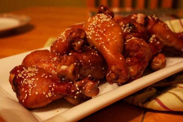 Ингредиенты: ножки куриные - 1 кг вода - 1/2 стакана соус терияки - 5 ст.л. масло растительное - 3 ст.л. уксус бальзамический - 1 ст.л. чеснок - 3 зубчика перец розовый молотый перец черный молотый перец кайенский соль Приготовление: Курица Куриные голени Куриные ножки