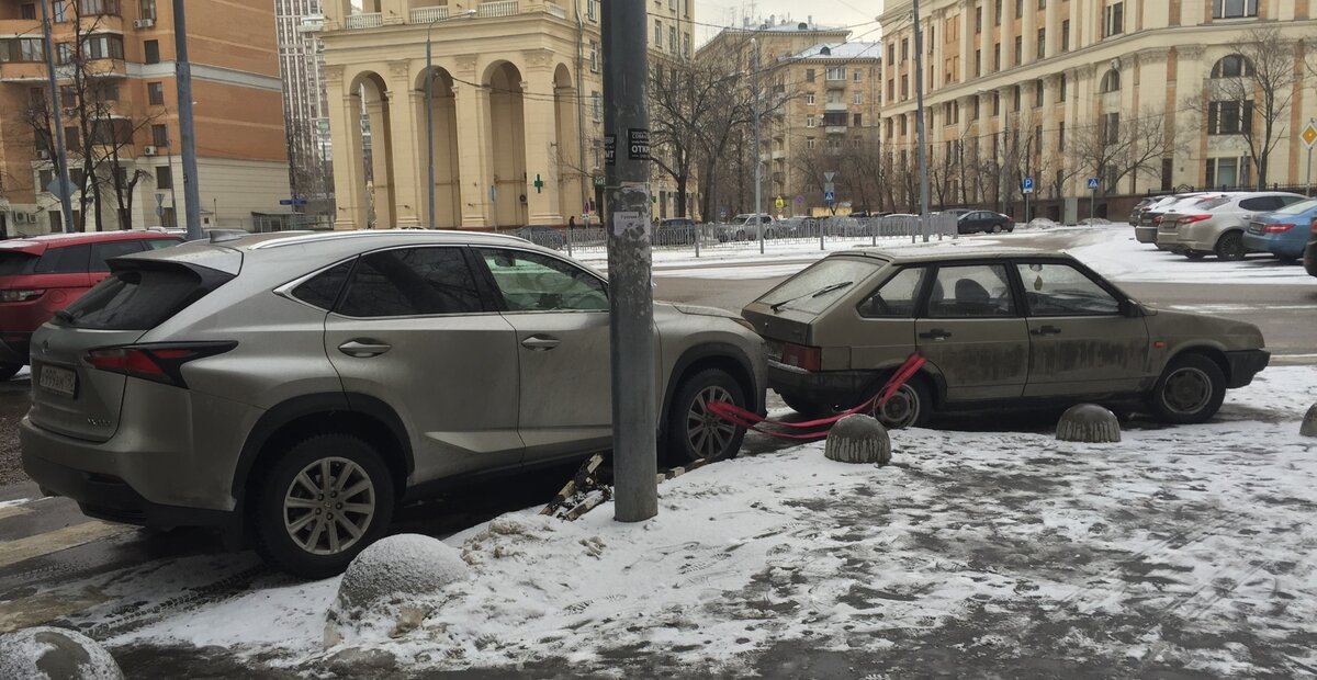 Сначала я увидел уникума на Мерседесе, который привязывался к столбу. Но сегодня я увидел картину еще прекраснее: Lexus N200 с номерами "ХАМ" привязался к девятке! А в 4 метрах стоит наш офис, в котором шесть этажей паркинга, на многих из них двухэтажные парковочные подъемники. А вообще надо переходить на Smart — на нём можно парковаться вот так. Updated: я плюнул на все и пересел на огромный Escalade. Проблем с парковкой никаких!