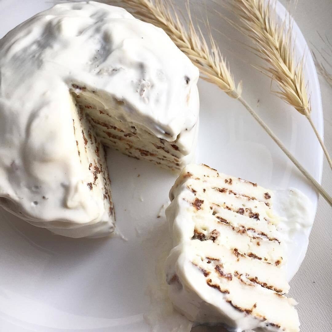 на 100грамм - 146.41 ккал Б/Ж/У - 15.09/2.53/15.59 Ингредиенты: На коржи: Мягкий творог 200 гр Рисовая мука 2 ст.л Яйцо 1 шт Подсластитель по вкусу На творожный слой: Мягкий творог 170 гр Мёд 30 гр Приготовление: Все ингредиенты для коржиков тщательно перемешиваем до однородной массы. Жарим коржики на а/п сковородке без масла, желаемой формы. Все ингредиенты для творожного слоя смешиваем. Каждый коржик протыкаем вилкой или зубачисткой. Смазываем коржи кремом. Формируем торт и украшаем сверху остатками творога. Тортик можно оставить в холодильнике на пропитку или же есть сразу, тоже очень вкусно! Приятного аппетита!