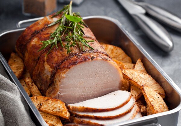 Ингредиенты: свиная корейка без кости — 1 кг черный перец горошком — 1.5 ч.л. ягоды можжевельника — 5 шт. острая молотая паприка — 0.5 ч.л. сладкая молотая паприка — 2 ч.л. сушеный тимьян — 2 ч.л. морская соль — 2 ст.л. растительное масло- 4 ст.л. сухое белое вино — 2 ст.л. картофель — 4-5 шт. соль, молотый пере — о вкусу Приготовление: Черный перец и можжевельник растолочь в ступке, добавить острую и сладкую паприку, тимьян, соль и масло, тщательно перемешать. Натереть мясо полученной смесью, обвязать кулинарной нитью, положить в контейнер с крышкой и убрать в холодильник минимум на 1 час. За 30 минут до приготовления достать мясо из холодильника. Разогреть духовку до 180 градусов. Обжарить мясо со всех сторон на раскаленной сухой сковороде с антипригарным покрытием, переложить в форму для запекания, добавив вино. Рядом с мясом разложить нарезанную дольками картошку, натертую солью и перцем. Запекать на среднем уровне предварительно разогретой духовки 40 минут. В процессе запекан