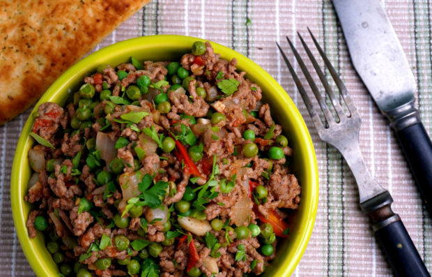 Подавать такое пикантное индийское блюдо мы рекомендуем с простой лепешкой или питой, но вы можете поэкспериментировать и попробовать другие варианты. Alexa Stefani 9300 Ингредиенты: Фарш говяжий 500 г Помидоры средние 2 шт. Горох (свежий или замороженный) 1/2 ст. Лук репчатый 1 шт. Чеснок 4 зубчика Гарам масала 1/2 ч. л. Паприка 1 ч. л. Кориандр молотый 2 ч. л. Тмин молотый 1/2 ч. л. Уксус яблочный 1 ст. л. Соль, перец по вкусу Кинза несколько веточек Масло растительное 3 ст. л. Корень имбиря 2 см Способ приготовления: Чеснок очистить и мелко нарезать. Корень имбиря очистить и натереть на мелкой терке. Лук очистить и нарезать средними кубиками. Обжарить лук в нагретой с растительным маслом сковороде до золотистого цвета. Добавить чеснок и имбирь. Перемешать и обжаривать минуту. Затем добавить все пряности и еще раз перемешать. Далее добавить в сковороду фарш и обжаривать его, пока он не потемнеет. Затем выложить в сковороду нарезанные кубиками помидоры и горох. Посолить, попе