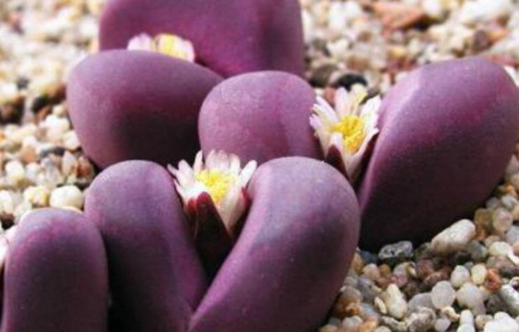 Литопсы - это суккулентные растения, которые называют «живые камни», очень необычные растения каменистых пустынь. Их легко перепутать с камнями, они небольшие и округлые, окраской повторяют почву, на которой растут. Род Литопс (Lithops) относят к семейству Аизовые (Aizoaceae) или мезембриантемовые. В настоящее время официально насчитывают 37 видов этого рода, некоторые виды делятся на подвиды. Определить точно вид порой не легко, так как окраска и некоторые другие особенности изменчивы, зависят от окружающей среды. В естественных условиях литопсы растут в каменистых пустынях Южной и Юго-Западной Африки. Обнаружить их можно даже там, где не могут жить другие растения. Литопсы выдерживают большие перепады температур, в пустынях днем бывает жара до +50 градусов, а ночью очень холодно. Литопсы живут на южных склонах, на каменных осыпях, на твердой глинистой почве, на гранитной крошке. Окраска «живых камней» может быть разной, она изменяется в зависимости от цвета почвы. Оттенки листочко