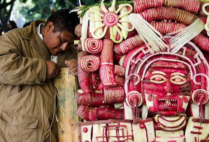 10. Ночь редиса Где: Оахака, Мексика Когда: 23-24 декабря ежегодно Мексиканский кулинарный фестиваль, на котором творения из еды просто жалко есть! Он появился в XVI веке, когда испанские монахи завезли редис в новые колонии. Чтобы привлечь внимание на продовольственных рынках, продавцы вырезали из нового овоща причудливые скульптуры. Эта традиция продолжалась в течение многих веков, пока не стала официальным фестивалем в 1987 году. Из редиски вырезают разные фигурки, а также запутанные религиозные и культурные сцены. Ремесленники могут конкурировать в трех различных категориях за денежные призы.