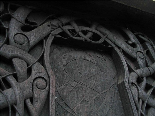 Деревянная резьба церкви Урнес в Западной Норвегии украшает двойные двери, угловой столб, и сохранившиеся частично панели фронтонов. Стиль Урнес стал последней фазой длительного развития скандинавской звериной орнаментики. Назван по орнаментике резьбы по дереву в церкви в Урнесе (Норвегия). Характерные особенности – использование старого скандинавского мотива – сражающиеся звери (или кусающиеся звери), но в иных формах: тонкие конечности, сплетающиеся как нити. Старый мотив «звериного стиля» – сражающиеся звери,в стиле Урнес выступает в изысканных и плавных линиях растительного орнамента, переплетения тонких линий, заканчивающихся трилистником или головой птицы, змеи. В стиле Урнес встречаются змееподобные животные, переплетающиеся змеи, напоминающие тонкие стебли растений, иногда увенчанные змеиной головой. Характерной чертой стиля Урнес является асимметричная композиция из волнообразно переплетённых растений, тел животных и змей. Петли изображены в форме цифры 8, и для этого стиля х