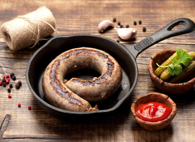 Попробовав хотя бы раз домашнюю колбаску из настоящего мяса, навряд ли захочется снова возвращаться к покупным вариантам сомнительного качества. Что может быть лучше собственноручно приготовленной закуски? Домашняя колбаса по нашему рецепту получается с нежным и сочным куриным мясом, пикантной дижонской горчицей и ароматными пряностями в хрустящей румяной оболочке – именно то, что нужно на праздничном столе! Ингредиенты: 2 кг куриных окорочков, 200 г свиного шпика, 3 шт. кишок, 1 головка чеснока, 1 ст. ложка дижонской горчицы, хмели-сунели по вкусу, молотая паприка по вкусу, черный молотый перец по вкусу, сахар по вкусу, соль по вкусу. Приготовление: С куриных окорочков снять мясо, отделяя шкурку и жир. Куриный и свиной жир, а также шкурку и чеснок пропустить через мелкую решетку мясорубки. Куриное мясо перекрутить через крупную решетку мясорубки. Смешать мясо с остальным фаршем, добавить соль, сахар, горчицу и специи и хорошенько перемешать. Поставить фарш для домашней колбасы в