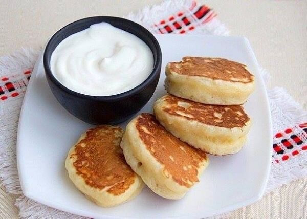 Ингредиенты: Мука – 350-400 г Яйцо – 1 шт. Молоко – 500 мл Дрожжи сухие – 1 ч. л. Сахар – 2-3 ст. л. Соль – 0,5 ч. л. Масло растительное для жарки Приготовление: 1. Молоко подогрейте до теплого состояния и перелейте в большую миску. Добавьте 1 ложку сахара и дрожжи, перемешайте венчиком, накройте полотенцем и поставьте в теплое место на 10-15 минут. 2. Яйцо взбейте венчиком. Добавьте в молоко яйцо, соль, оставшийся сахар и муку. Хорошо перемешайте до получения однородного густого теста. 3. Накройте миску и оставьте на 1-1,5 часа, тесто за это время должно увеличиться вдвое. 4. Раскалите на сковороде растительное масло, выложите ложкой на сковороду оладьи и обжарьте их с двух сторон до готовности. Подавайте со сметаной или вареньем.