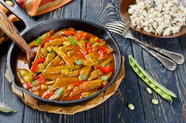 Ингредиенты: стручковая фасоль — 600 г болгарский перец — 1-2 шт. лук — 1 шт. дольки чеснока — 2 шт. растительное масло — для обжаривания консервированные томаты в собственном соку — 400 мл томатная паста — 2 ст.л. карри — 1 ч.л. сушеные прованские травы — 1 ч.л. сахар — 1-2 ч.л. морская соль — 1 ч.л. вода — по вкусу зелень — для подачи Приготовление: Лук и чеснок почистить и мелко нарезать. Сладкий перец помыть, убрать семена и нарезать соломкой. 2. Обжарить на растительном масле лук и чеснок. Добавить перец, обжарить до полуготовности. 3. Добавить нарезанные помидоры без кожицы, томатную пасту и сахар. Тушить 3-5 минут. 4. Всыпать прованские травы, карри и соль. Потушить еще минуту. 5. Размороженную стручковую фасоль разрезать на несколько частей, если нужно. 6. Добавить фасоль в овощной соус, влить немного воды. Тушить рагу до готовности фасоли. 7. Подавать, посыпав измельченной зеленью. Приятного аппетита! 😉 Понравился рецепт? Поставьте лайк 💙 😉 Наш сайт - https://reca