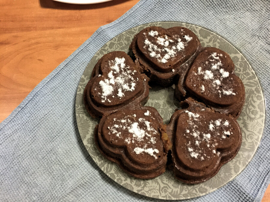Коврижка постная в микроволновке. Ингредиенты: Коврижка постная в микроволновке. Приготовление: Перемешать сахар, масло, мёд, специи, ванилин, какао, соль и воду. Добавить к получившейся смеси просеянную муку, смешанную с разрыхлителем. Орехи порубить в крошку и добавить в тесто, перемешать. Выложить тесто в силиконовую форму с высокими бортиками. Готовить в микроволновке на средней мощности 5 минут. Затем перевести на низкую мощность и выпекать ещё 12 минут. Опрокинуть форму с коврижкой на плоскую тарелку. После остывания присыпать сахарной пудрой.