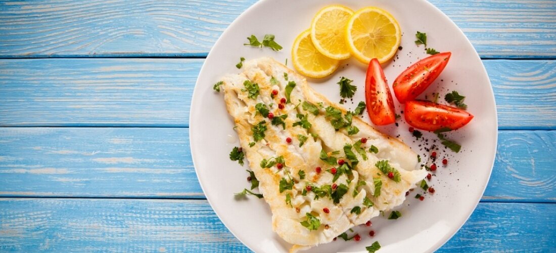 Рецепт под удивительным сочетанием ароматов чеснока и петрушки. Ингредиенты (на 4 порции): Это простой рецепт жареной трески с ароматными акцентами. Треска довольно нежная рыба, поэтому жариться рыба будет очень быстро. Для начала филе надо ополоснуть холодной водой и обсушить бумажными полотенцами. Рыбку посыпаем солью и перцем. Разогреваем на сковороде растительное масло, добавляем мелко порубленный чеснок и порезанные на половинки помидоры черри. Прогреваем чеснок и помидоры в течении 1-2 минут, затем добавляем в сковороду сливочное масло. Все тщательно перемешиваем и укладываем в сковороду филе трески. Жарим рыбу 3-5 минут, часто поливая маслом со дна сковороды. Как только треска поджарилась с одной стороны, аккуратно переворачиваем ее и жарим вторую сторону еще 3-4 минуты. Если треска прилипла к сковороде, не стоит таранить ее лопаточкой. Покачайте сковороду плавными движениями вперед-назад, продолжая жарить. Рыба отлипнет от поверхности сковороды и можно будет легко поддеть ее