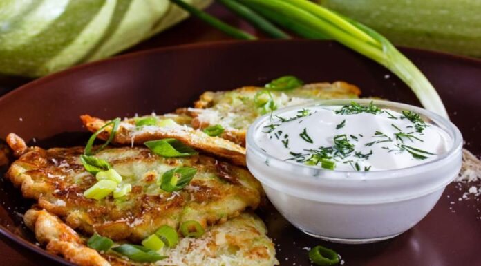 • Кабачки натереть на мелкой терке вместе с луком. Посолить, поперчить, смешать получившийся фарш с яйцом, мукой и нарезанной зеленью.