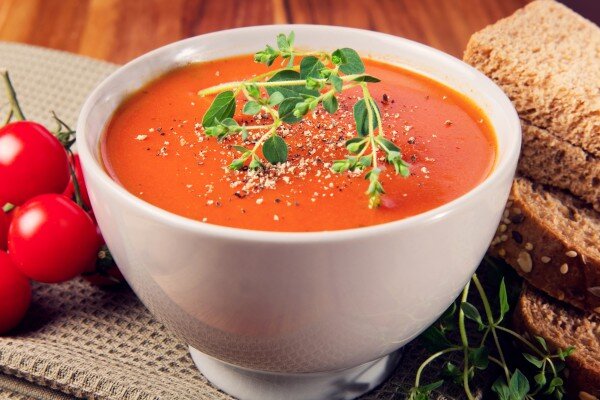 Для приготовления итальянского томатного супа можно использовать помидоры в собственном соку или свежие помидоры, но тогда они должны быть очень спелыми. Ингредиенты: нарезанный репчатый лук — 2 стакана оливковое масло — 4 ст.л. измельченный чеснок — 5 шт. очищенные консервированные помидоры — 1.6 л лавровый лист — 5 шт. куриный бульон — 2 стакана нарезанный белый хлеб без корок — 1+1/2 стакана сушеный орегано — 1 ч.л. крупная соль — 1/2 ч.л. тертый пармезан, молотый перец или зелень — для подачи Приготовление: Нагреть 2 столовые ложки оливкового масла на среднем огне в большой кастрюле с толстым дном. Добавить нарезанный кубиками лук и готовить на слабом огне 10-12 минут. Добавить измельченный чеснок и жарить в течение еще одной минуты. Добавить очищенные и нарезанные помидоры в кастрюлю с луком, размять их вилкой. Влить куриный бульон, добавить лавровый лист и орегано. Довести до кипения и уменьшить огонь. Варить 20 минут. Нагреть 2 столовые ложки оливкового масла в сковороде на