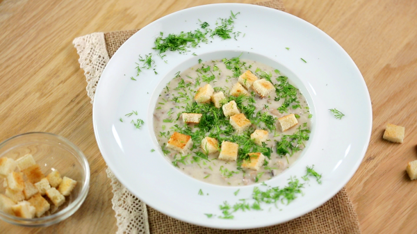 Вылить полученную массу в бульон и добавить сливки.