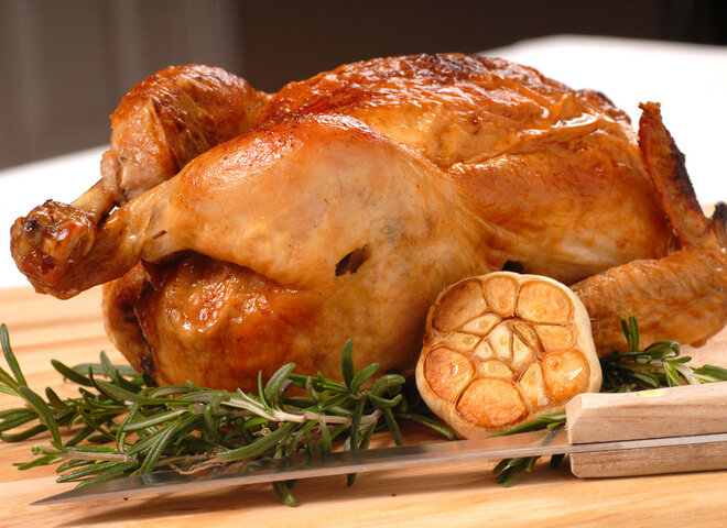 Мы подготовили для вас сегодня ну очень вкусный рецепт жареной курочки. Со сливочным соусом, с травками и чесночком, это блюдо станет настоящим праздником. Ингредиенты: тушка курицы 2 кг, 200 мл сухого белого вина, 200 мл сливок (10-20%), 4 зубчика чеснока, 1.5 ч. ложки соли, пучок свежего тимьяна (20 г), несколько листиков свежего шалфея, шприц с толстой иголкой. Приготовление: Промыть тушку курицы и обсушить ее бумажными салфетками. Чеснок растереть с солью в ступке до однородной кашицы. Предварительно разогреть духовку до 180 градусов. Отдельно смешать вино, сливки и чесночную кашицу. Хорошо перемешать. С помощью шприца сделать курочке инъекции с маринадом (проколов кожу иголкой в разным местах, влить под нее маринад). Травы (тимьян и листья шалфея) нужно тоже поместить курице под кожу. Аккуратно приподнимать на спинке и грудке. Чем больше — тем лучше. Только очень аккуратно, чтобы не порвать кожу. «Наколотую» и нашпигованную курицу полить оставшимся маринадом, накрыть пищевой
