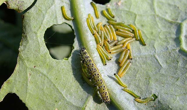 Появление на капусте гусениц, большая проблема для всех дачников. Но существует хорошо себя зарекомендовавший раствор, как справиться с этими вредителями без применения химикатов. Обработка капусты производится несколько раз за сезон. Для его изготовления потребуется подходящая емкость с горячей водой и 0,5 л древесной голы. Учтите, брать оцинкованную тару не следует, а вода должна быть нагрета почти до кипятка. Добавляем золу в воду и хорошо размешиваем. Емкость накрывается крышкой и состав настаивается в течение суток. Для лучшей сцепки состава с растениями, трем на терке пол куска мыла (хозяйственного), вновь размешиваем и оставляем на сутки. Смесь на капусту наносится половником. Аккуратно лейте раствор в середину растения. На следующие сутки, гусениц больше не будет.