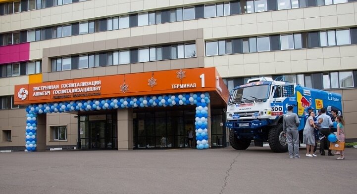В благотворительной акции ВТБ «Мир без слёз» приняли участие пилоты команды «КАМАЗ-мастер» и герои передачи «Спокойной ночи, малыши!». Cегодня, 3 августа в КМДЦ прошла акция благотворительной программы банка ВТБ «Мир без слёз». В рамках этой программы банк помог больнице купить аппарат искусственной вентиляции лёгких для отделения анестезиологии и реанимации за полтора миллиона рублей. Программа «Мир без слёз» направлена на поддержку крупных детских больниц по всей России. Участвовать в программе может любая больница, необходимо только подать заявку, причем медики сами выбирают, какое оборудование, лекарства и расходные материалы им сейчас необходимы. За 14 лет существования программы помощь банка получили больше 100 детских больниц в 52 регионах. Юных пациентов в этот день радовали клоуны, которые пускали вместе с детьми мыльные пузыри и веселили малышей. Главным сюрпризом мероприятия стали гости из Москвы, герои всеми любимой телевизионной передачи «Спокойной ночи, малы