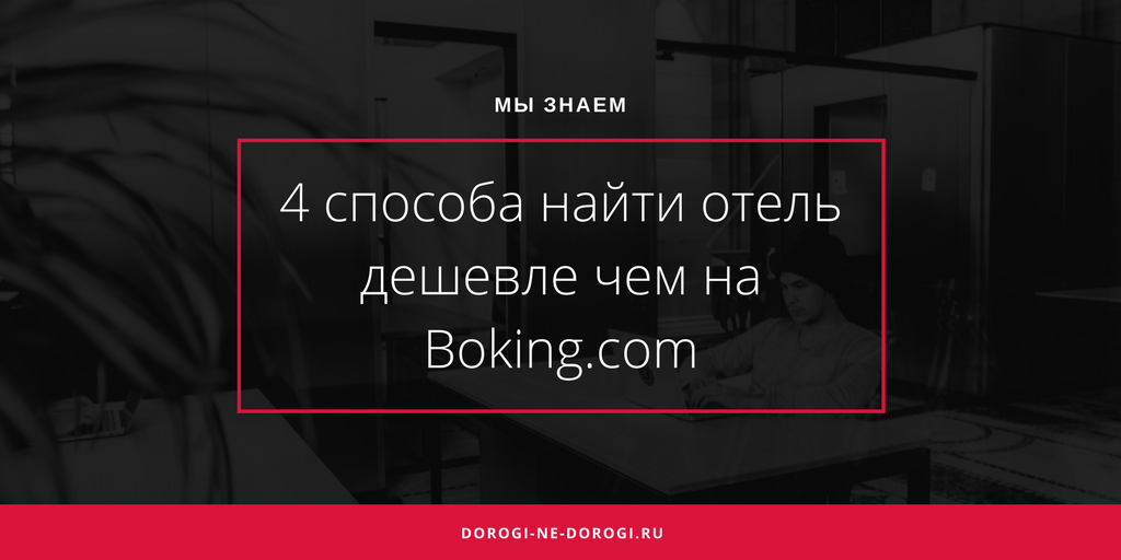 Booking.com — популярный ссервис бронирования, которому доверяет весь мир. Сайт утверждает, что у них самые низкие цены на отели. Сразу скажу, что это не всегда так — на других сайтах отель можно забронировать дешевле, чем на Букинге. На каких именно сайтах и как это сделать, сейчас разберёмся. Букинг, как все популярные продукты, вызывает множество споров: хороший он или плохой, дорогой или дешевый. Вопросов к нему много как со стороны путешественников, так и со стороны отелей. Нам нужно знать следующее: - сайт действительно работает и в 99 случаях из 100 работает хорошо - альтернативы ему есть и найти отель дешевле, чем на Букинге действительно возможно - ошибки в работе системы иногда случаются, но это происходит не часто. 4 способа найти отель дешевле, чем на booking.com 1. Воспользоваться поисковиком по сайтам бронирования Самый простой и удобный способ — воспользуйтесь сайтом hotellook или ему подобными — roomguru, например. Это не системы бронирования, хотя у нек