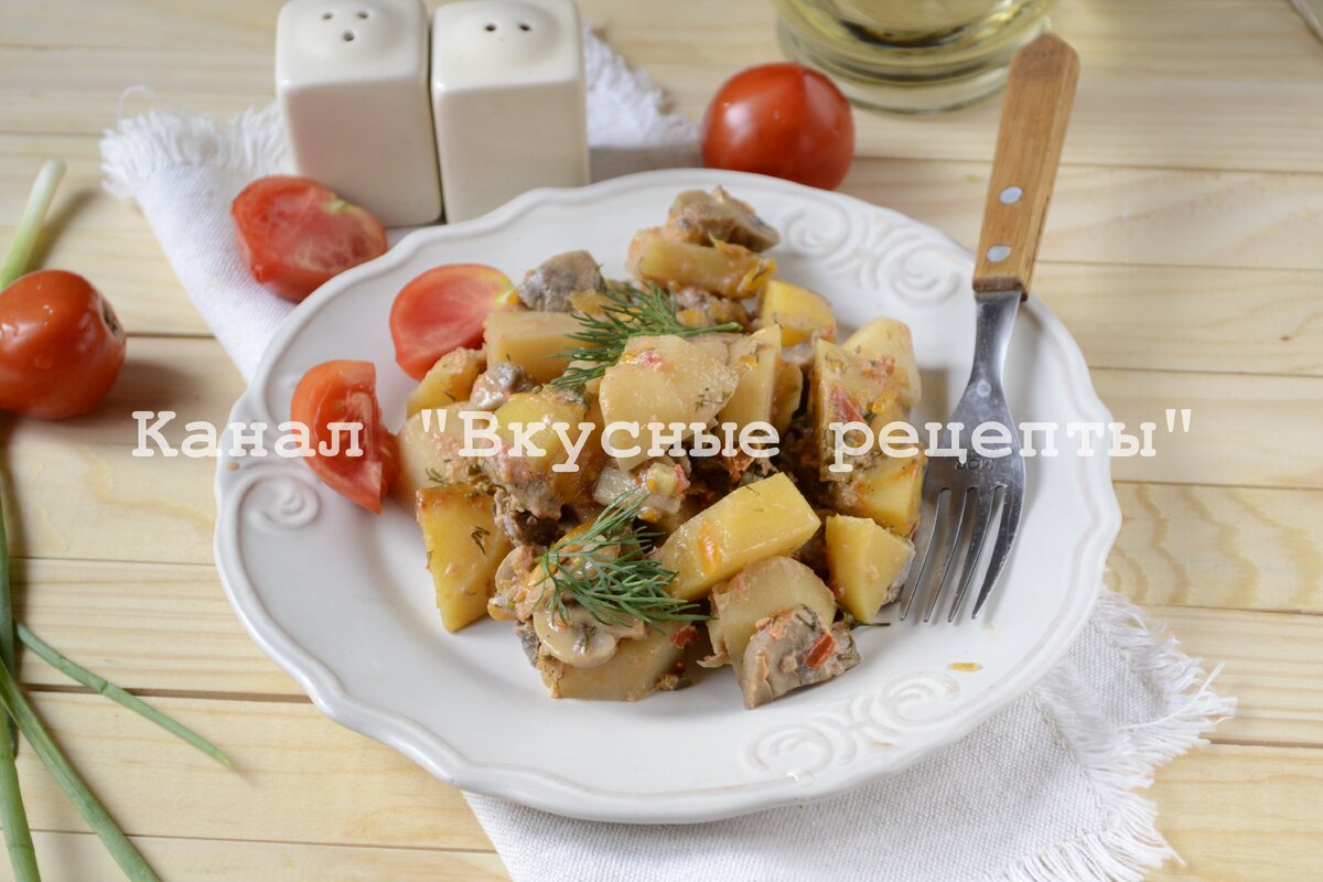 Недорогое, но вкусное блюдо из обычной картошки и грибов. Весь секрет в способе приготовления. Чтобы приготовить что-то вкусное на обед или ужин для всей семьи, не обязательно затрачивать массу времени и финансов. Все можно сделать из повседневных продуктов, которые наверняка найдутся в закромах у запасливой хозяйки. В противном случае несложно прогуляться до ближайшего супермаркета или рынка. Там для приготовления легких и вкусных блюд уж точно имеется все недорогое и нужное. Например, из обычной картошки и грибов, которые все привычно жарят на сковороде, можно сделать настоящее лакомство на ужин или обед. И наш канал поделится с вами рецептом вкусной тушенной картошки с грибами. Только готовить блюдо из этих продуктов мы будет не традиционным способом, а в духовке. Ингредиенты: • картошка – 1 кг; • морковь – 150-200 г (1 корнеплод средних размеров); • помидоры – 200 г (можно взять 1 стакан томатного сока или 2 столовых ложки томатной пасты); • сметана – 70-100 г (можно заменить майо