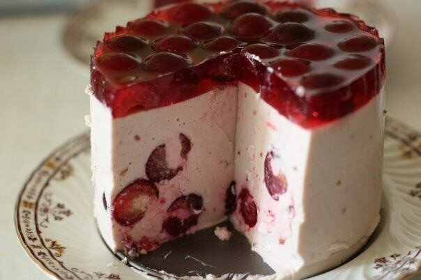 Итого на 100 грамм 73 ккал Б/Ж/У 8.5 / 1.6 / 6.3 Ингредиенты: желатина 10г 100г молока 1,5% 250 г йогурта 250 г творога 2% вишня 1 ст стевия, ванилин по вкусу рецепт: пакетик желатина (10г) залить 100г молока и дать набухнуть. через 20-30 минут (см.инструкцию) поставить на водяную баню и помешивать, пока желатин полностью не растворится. не кипятить! оставить остывать. в это время смешать в блендере творог, йогурт, свежую вишню и стевию в порошке или немного меда. делала все на глаз. пропорции творога и йогурта примерно 1:1. на 2 стаканчика йогурта (у меня натур. активиа по 125г) я брала примерно столько же (или чуть больше) творога. всё зависит от творога. главное, чтобы масса не была слишком жидкой. стевию главное не переборщить чтоб горько не было - и по вкусу немного ванилина для аромата. творожную массу ввести растворенный желатин. я в готовую массу добавила еще целых ягод вишни. разлить полученную смесь по формочкам или в одну большую форму и поставить в холодил
