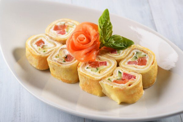 Ингредиенты: тнкие блины — 6 шт. сливочный сыр — 6 ст.л. свежие огурцы — 2-3 шт. слабосоленое филе лосося — 150 г Приготовление: Приготовить тонкие блины на молоке. Огурцы и филе лосося нарезать мелкими кубиками. Блины смазать сливочным сыром, сверху разложить кусочки рыбы и огурцов. С помощью коврика для суши завернуть блины в роллы и разрезать их на порционные кусочки. Приятного аппетита! 😉 Понравился рецепт? Поставьте лайк 💙 😉 Наш сайт - https://recase.org 😉 Мы вконтакте - https://vk.com/recase_org