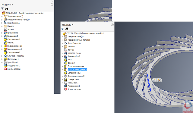 Добрый день! Вопрос от Александра Продолжаю дорабатывать Inventor под собственные нужды. Столкнулся тут с одной, на мой взгляд, очевидной проблемой, а решение найти не могу. Напишите, пожалуйста, если знаете: у нас есть деталь, а в ней располагаются ее элементы: вращение, сдвиг, выдавливание и т.д. Программа по умолчанию присваивает им имена типа "Вращение1", "Вращение2", "Сдвиг1" и т.д. Вопрос - каким образом средствами ilogic обращаться к этим именам? Мне их нужно менять и менять динамически, в зависимости от ситуации, а в своей программе не понимаю как к ним обратиться. Поменять имена элементов модели в Autodesk Inventor (в английской версии они называются Features, в русской Конструктивные элементы) можно с помощью несложного правила на iLogic. Полный текст статьи доступен по ссылке С уважением, Андрей Михайлов "САПР для инженера"