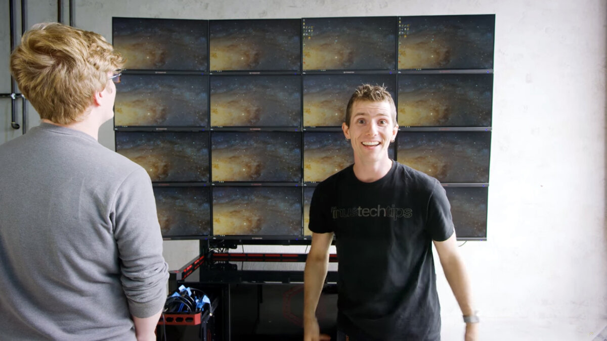 Если вы думали, что 4K - это предел, то вы сильно ошибались. Недавно команда Linus Tech Tips собрала 16 мониторов воедино, что в итоге составило разрешение в 16K. Теперь, когда вы узнали об этой новости, можно начать копить деньги на покупку собственного "кинотеатра", так как именно к моменту, когда вы соберёте нужную сумму, видеокарты будут способны держать стабильно 15 FPS в Minecraft (может быть 20, если повезёт). Если говорить серьёзно, то то, что сделал Linus Sebastian, на самом деле никто ранее не повторял. Максимально играли при разрешении 8K. Посмотрите видео ниже, чтобы понять, как много сил и железа потребовалось для создания 16K. Для создания подобного эффекта вам понадобятся: супер-пупер мощный CPU, стоимость которого я лучше сообщать не буду, несколько топовых видеокарт от NVIDIA, технологии Synergy для нескольких экранов, а также 16 Asus Predator XB1 с разрешением 4K. P.S. даже такая конфигурация, как у LinusTechTips, не способна адекватно отображать игры на таком разре