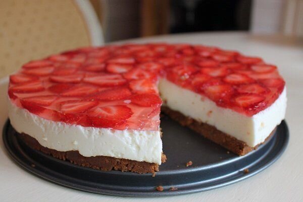 Покройте всю поверхность чизкейка клубникой и залейте все клубничным желе после чего отправьте чизкейк в холодильник. Через час Ваш чизкейк готов. Приятного аппетита!