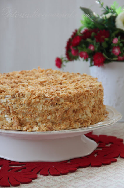 Это потрясающий торт из слоеных коржей, ягоды и само варенье дают кислинку, крем из сгущенного молока сглаживает её своей нежностью. Когда он пропитается, настоящее блаженство им лакомится! Тесто: 2,5 стакана муки