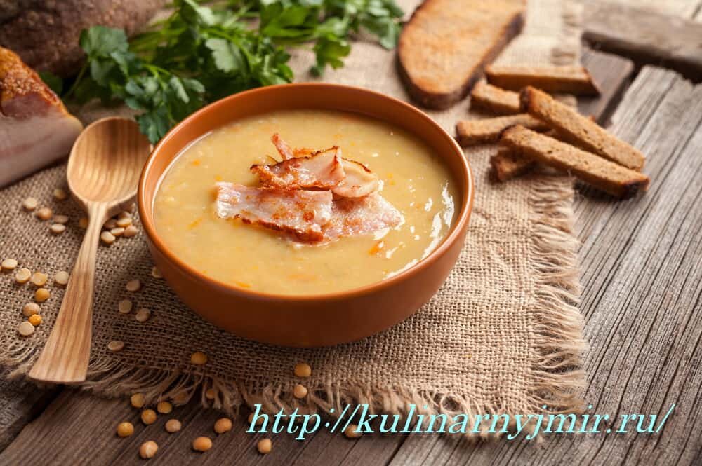 Вкусный, ароматный и сытный гороховый суп-пюре с беконом