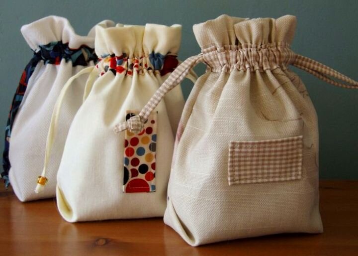 Вам потребуется совсем немного времени и сил, чтобы сшить симпатичные многофункциональные тканевые мешочки для кухни и дома. В быту они будут очень полезны. В зависимости от типа ткани, который вы выбрали для изготовления этого аксессуара, в нем можно хранить самые разные вещи. Кто-то приспосабливает такие мешочки на кухне – в них очень удобно держать макароны и различные крупы. Также мешочки можно сшить совсем небольшими, наполнить их ароматными и душистыми травами, а затем положить один под подушку, другой – в шкаф, третий – в комод и т.д. Использование такой «упаковки» очень популярно и применяется для ароматизации. А еще в мешочках можно держать различную мелочь: от пуговиц до заколок для волос. Словом, применение у них действительно широкое – в каждом доме пригодятся. Что нам понадобится? Как сшить мешочки своими руками? Сначала делаем выкройку. Размер ее зависит от того, каким вы хотите видеть будущую поделку. В конкретном примере в качестве основы взята ткань размером 12*30 см.