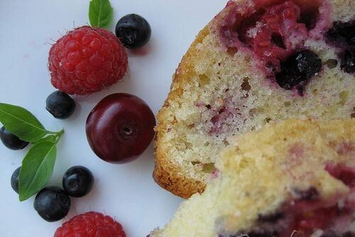 Ягоды помойте, обсушите салфеткой и обваляйте в столовой ложке муки. Затем добавьте их в тесто и аккуратно перемешайте. Подготовьте форму для выпечки. Немного смажьте ее маслом или выстелите пергаментом.