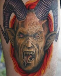 Тату тасманский дьявол – очень популярный вариант нательной живописи у различных островных племен. Это животное называется так из-за своего нереально боевого нрава. Оно готово бросаться на человека, волка, медведя, кого угодно, если пришли на его территорию. Тем не менее, Тасманский дьявол обладает маленькими размерами, но может справиться с более тяжелым соперником. Тату дьявола значит только одно – он никогда не сдается. Подробнее - http://tattoolove.ru/tattoo-devil/