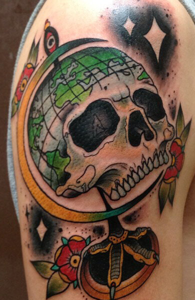 Тату глобус является достаточно популярным в последние годы и практически не известным в истории нательной живописи. Зачастую он наноситься путешественниками, которые на переднем плане рисунка изображают любимую точку нашей планеты. Иногда татуировка выполняется в стиле 3д, поэтому может показаться, что глобус передвигается. В любом случае, это очень интересная идея для любого человека. Подробнее - http://tattoolove.ru/tatu-globus/