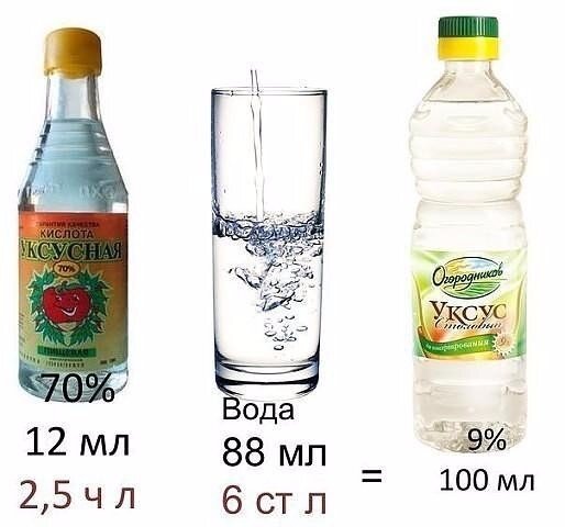 Чтобы получить эссенцию, с содержанием в ней чистого уксуса в количестве 9%,