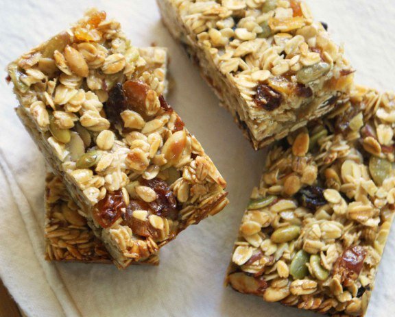 1. На противень, застеленный пекарской бумагой, поместить овсяные хлопья, миндаль, грецкие орехи, тыквенные и подсолнечные семечки, семена льна и кунжут. Миндаль порубить ножом на половинки, грецкие орехи – на крупные кусочки. Рекомендуется подсушить злаки в духовке 7 минут при температуре 180.