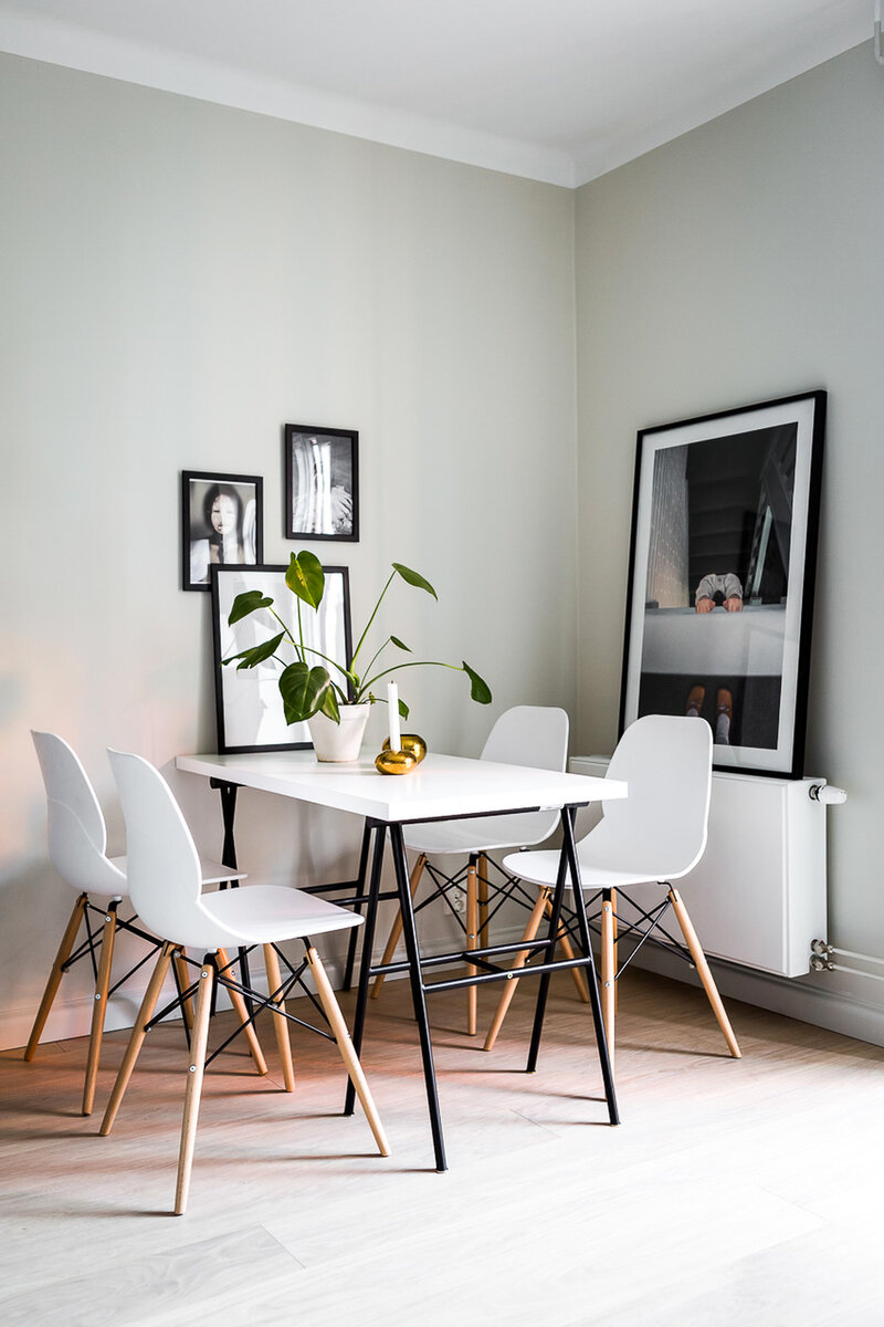 Небольшое, но хорошо организованное пространство этой квартиры-студии площадью 23 квадратных метра выглядит достаточно просторным благодаря сбалансированной жемчужно-серой гамме, чистым белым поверхностям мебели и большой балконной двери, которая впускает в интерьер яркий колористический акцент, идущий от стоящего напротив здания жёлтого цвета. Из-за этого создаётся впечатление, что квартира всегда залита солнечным светом. Комнатная зелень и уютный текстиль добавляют пространству ощущение тепла. Смотрите также: Квартира-студия площадью 33 квадратных метра в Стокгольме Источник