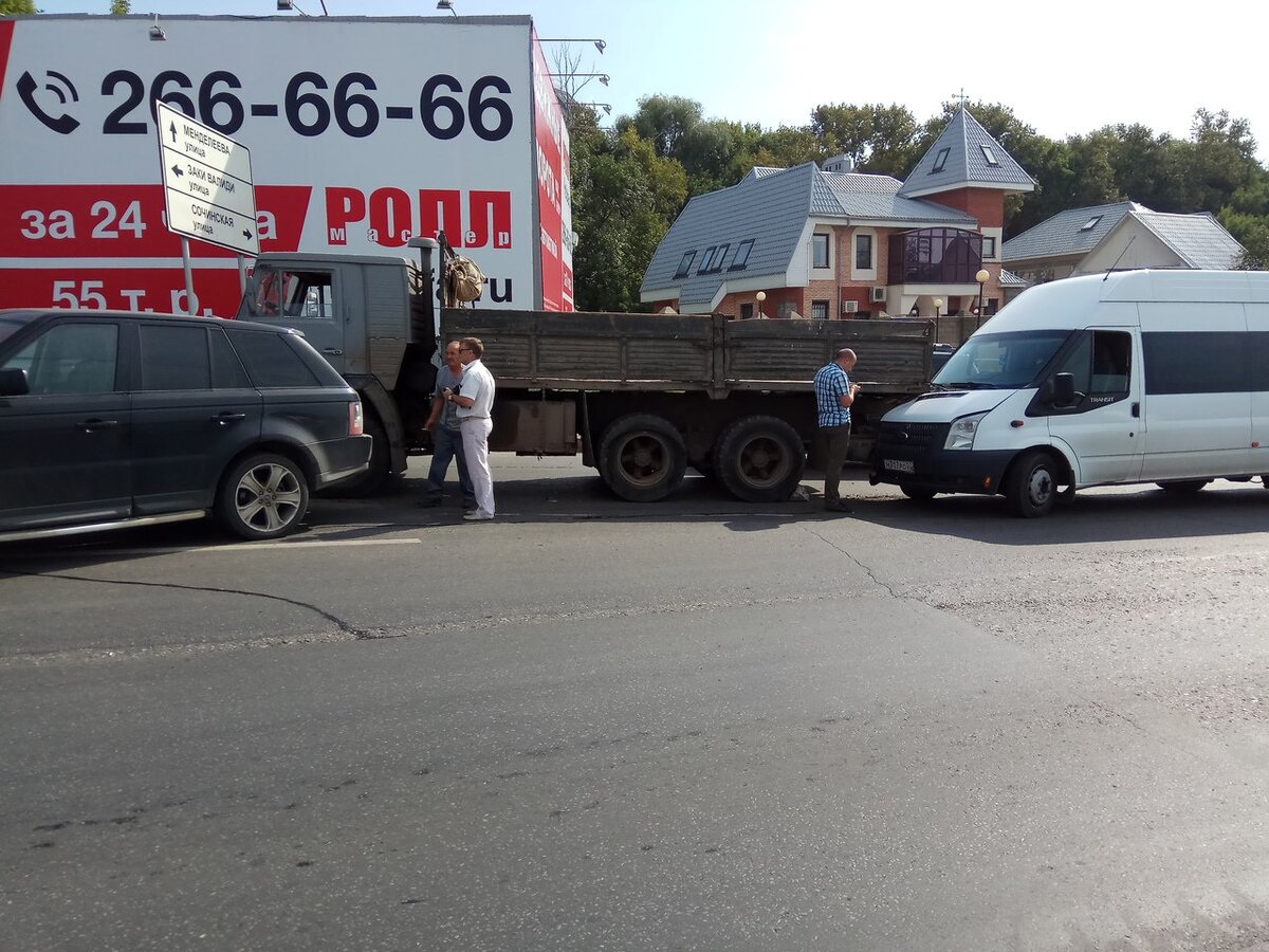 В Уфе на пересечении улиц Пугачева и Сочинской «КамАЗ» спровоцировал ДТП. Со слов очевидцев, у грузовика отказали тормоза, он подался назад и зацепил «Форд Транзит» и «Range Rover», сообщает издание ToDay News Ufa. В этот момент автомобили стояли на перекрестке на запрещающий сигнал светофора. По предварительным данным пострадавших людей нет, но все автомобили получили механические повреждения. У микроавтобуса - вмятина на передней части, у внедорожника помят бок. На место прибыли сотрудники Госавтоинспекции. Выясняются все обстоятельства случившегося.