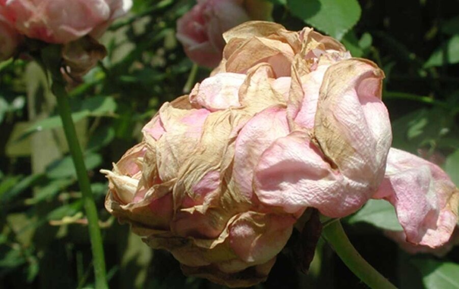 Есть вопрос! Летом на мои розы напал пилильщик. Почти все бутоны были погрызены. Как бороться с этим вредителем? Валентина, г. Белая церковь Трипсы – крошечные насекомые, которых привлекают роз. Они селятся в бутоне роз, в результате чего цветок становится коричневым либо бутон совсем не распускается Есть ответ! Скорее всего, причиной проблемы ваших роз являются не пилильщики (личинки довольно редких в природе ос, по виду напоминающие гусениц или слизней). Обычно они поражают либо листья роз, либо стебли, выгрызая их изнутри, что приводит к увяданию целых побегов. А вот бутоны «грызут» другие вредители. Самый распространенный вид из них — трипсы (мелкие насекомые, до 1.1 мм в длину, практически незаметные на глаз, чаще всего поражают светлые сорта роз). Развивается вредитель в земле, вблизи кустов роз, на время кормежки выползает на розы, используя листья и бутоны в пищу. Развитие трипсов циклично, за теплое время года выводится до 4-6 поколений вредителя. Бороться с трипсами нелегко
