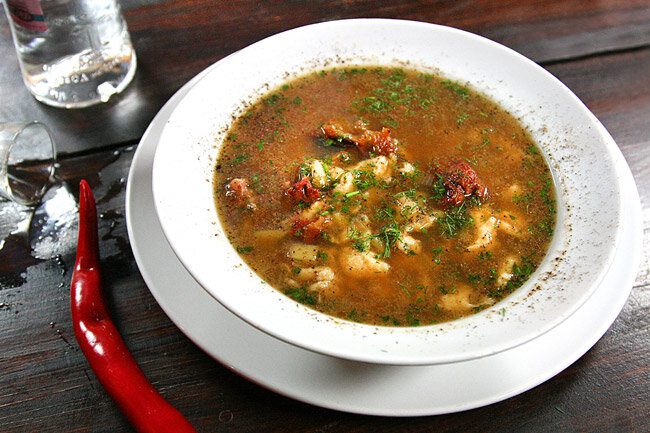 Впрочем, сегодня мы к этой кухне слегка приблизимся (за ради дополнительного опыта), приготовив суп с клецками на так называемом красном бульоне, хотя, повторюсь, бульонная основа этого супа может быть самой