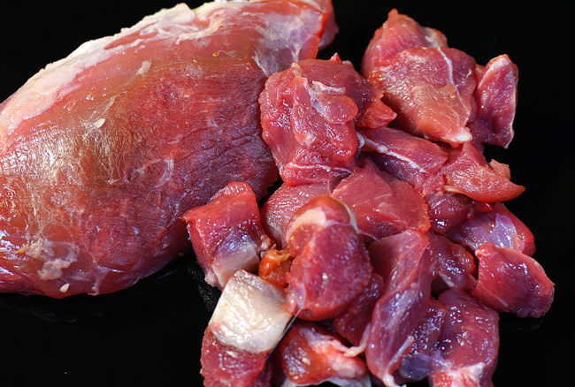 1. Мясо (100-150 гр.) Если это баранина, тут всё просто: мякоть любого отруба туши, кроме голени, отлично готовится в течение относительно непродолжительного времени. С говядиной сложнее - это либо подпозвоночная вырезка, либо мякоть толстого или тонкого края. Что-то другое требует более длительной термической обработки. Способ нарезки - небольшими, с фалангу пальца, кусочками. То есть чуть меньшего размера, нежели при "обычной" готовке плова, хотя особого значения это не имеет.