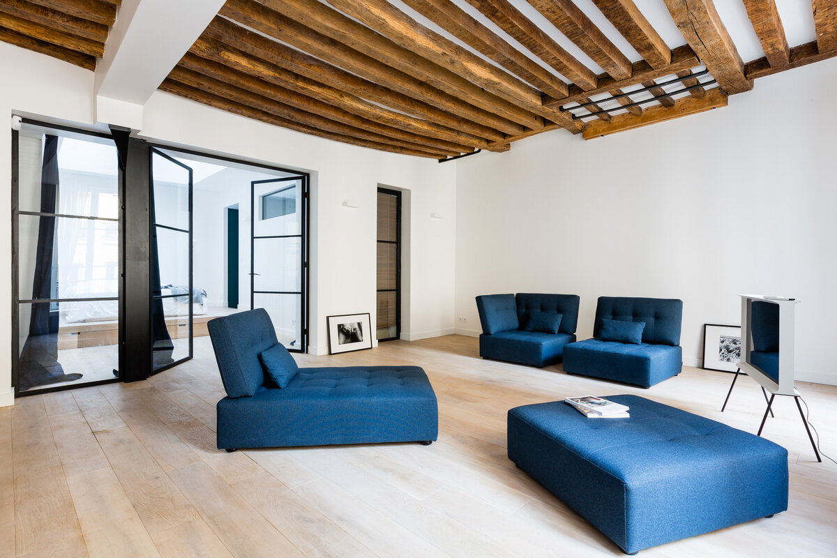 Архитектор Джонатан Стен реализовал интересный проект жилого интерьера. Квартира площадью 85 квадратных метров расположена в Париже, Франция. Она выполнена в стиле лофт и отличается использованием натуральных материалов. Чёткие формы и минимальное количество декора характеризуют это пространство. При этом отдельные цветовые акценты разбавляют подчёркнутую грубость некоторых деталей, как, например, кухонный остров и бетонная столешница. Фотографии: Agathe TISSIER Смотрите также: Молодёжный лофт в Париже Источник
