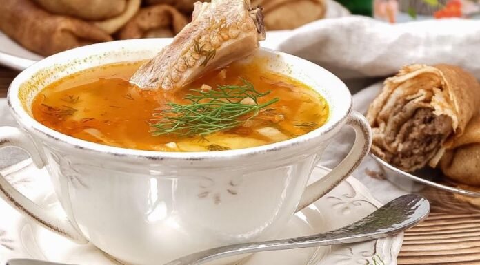 Щи на свиных ребрышках с кислой капустой — это потрясающее зимний суп, а блинчики с мясом — приятный сытный бонус к нему.