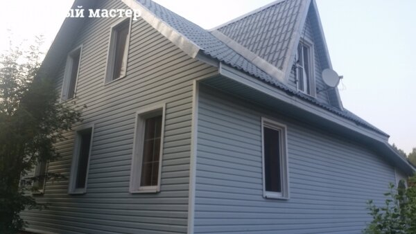С этого обзора мы начинаем серию отчетов о работе, выполняемой нашей компанией в одном из дачных поселков по Пятницкому шоссе в Московской области. Поставленная задача: В рамках данных работ нами выполняется: ремонт (реконструкция) фасада дачного дома в части демонтажа и повторного монтажа сайдинга, утепление стен дома вспененным пенополиуретаном (данную работу выполняли смежники), отделка цоколя цокольными панелями, реконструкция отмостки и дренажной системы дома. Но начнем по порядку. Сегодняшний отчет является описанием первой части работ по ремонту фасада дачного дома и его утеплению напыляемым пенополиуретаном. Ход выполнения работ: Итак, в данном случае объектом реконструкции является брусовой дом, обшитый сайдингом на деревянной обрешетке. Ниже, на фото, Вы можете видеть сам объект ремонта: В рамках работы по реконструкции фасада дачного дома, Заказчиком был согласован следующий объем работ: — демонтаж старого сайдинга с максимальным сохранением;