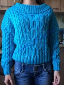 Сразу хочу сказать, что свитер получается широким. Набирая одинаковое количество петель, получаем свитер практически любого размера.