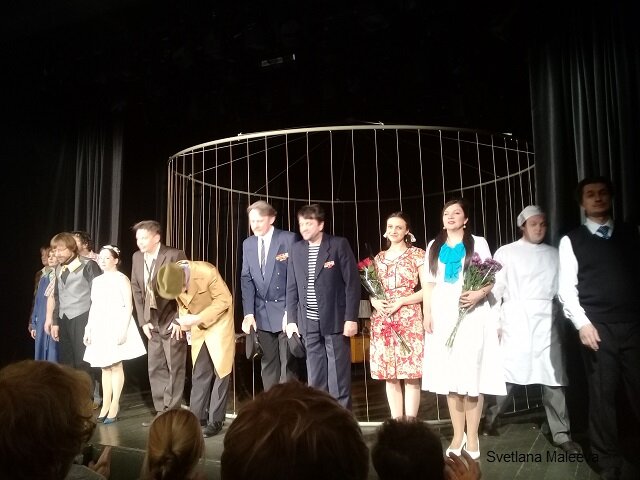 Вот и еще парочка алкогольных трипов на сцене русского театра. В пандан к незабвенному Венечке. Тут замаскировано, конечно, но суть просвечивает. Две кратких пьесы в одни спектакле и два нравоучения. Но истина все же -в вине. И даже нет - в водке. Театр, кажется мне, несколько другой посыл запустил постановкой, но сквозь все милости и нежности, блестит ярче всего стекло бутылки, ибо жизнь представлена реально, как абсурд, который не лечится. Вот первое моралитэ. Воронья роща называется. Под куполом – комнатка фабричной девчонки, боевой, симпатичной, доброй, вежливой, аккуратной (Антонина Королева). В выходной день такая девушка отдыхает в своем стиле: гладит белье и мечтает. Именно такая, правильная советская работница – и чашку чая согреет, и соседу-алкашу, доброму другу, веселому парню, уважительному к женщине мужику, Юрию Ивановичу Лохову (Алексей Зеленков), тару стеклянную под сдачу на опохмел даст, а там и (в будущем) получку на пропой. Просит несчастный – нужно дать. Ест