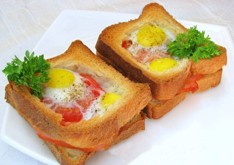 Обожаю готовить эти бутерброды, когда хочется перекусить чем-нибудь вкусным. Как всегда, мои рецепты простые и не дорогие. Уверена, вы возьмете на заметку. Приготовление: Для одного бутерброда понадобится 2 кусочка батона. Один укладываем на противень, смазываем кетчупом. Из второго удаляем мякиш, оставив только корочку. Укладываем этот кусочек сверху на первый. Получились "бортики". Укладываем теперь в выемку немного тертого сыра, кусочек колбасы и разбиваем яйцо. Солим по вкусу, добавляем молотый черный перец. Ставим в разогретую до 180 градусов духовку. Запекаем минут 5-6, пока белок не будет готов. Сверху посыпаем свежей зеленью и можно подавать на стол. Приятного аппетита!